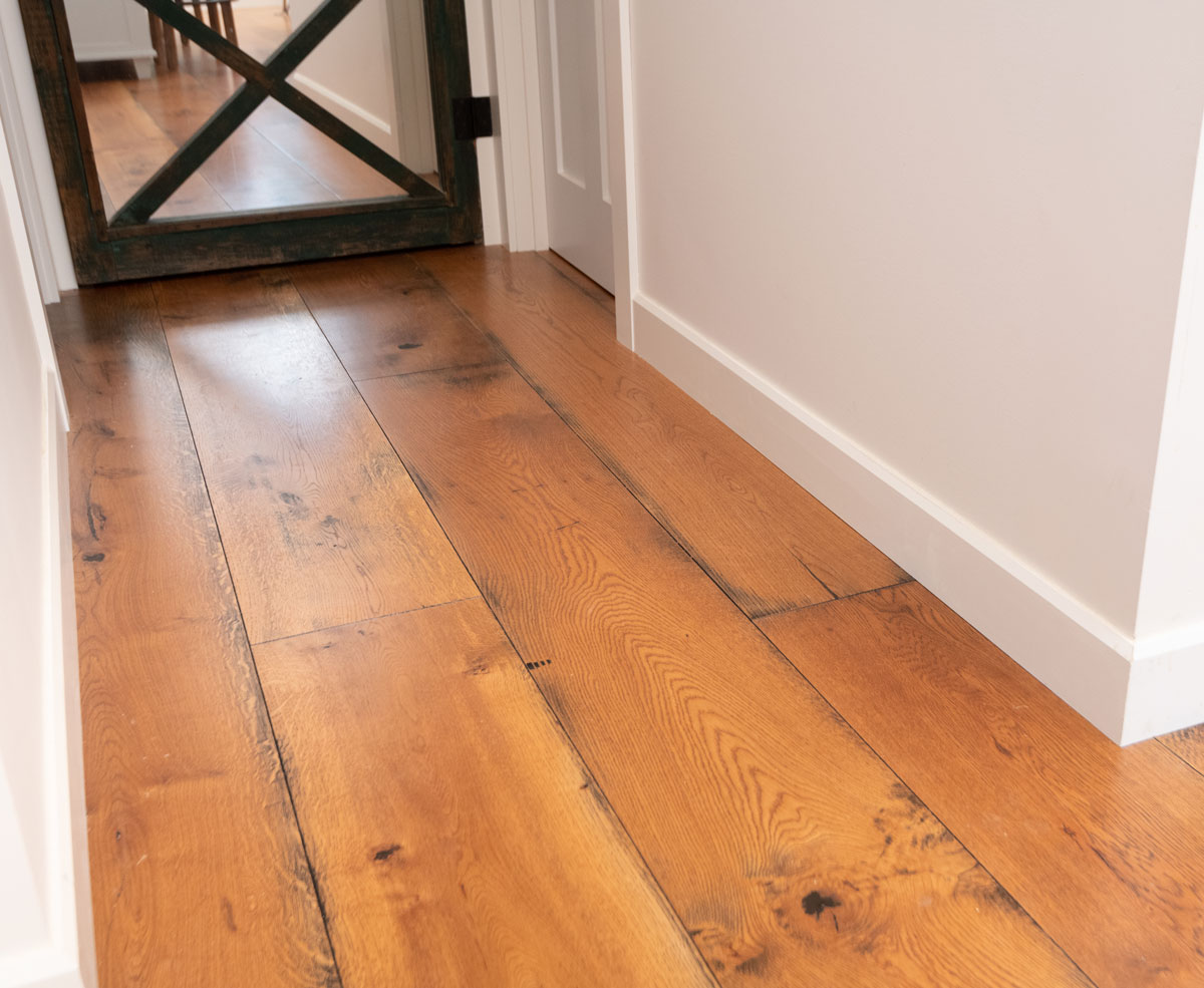 Also known as French Bleed, this hand-applied treatment adds depth and an antique, vintage look to create an aged appearance without hand distressing or hand scraping. By darkening the edge of each individual board, black bleed adds a distinct contrast between the beauty of the plank and the darkened edge, accentuating board width and providing an elegant visual texture that works well with a variety of decor themes.