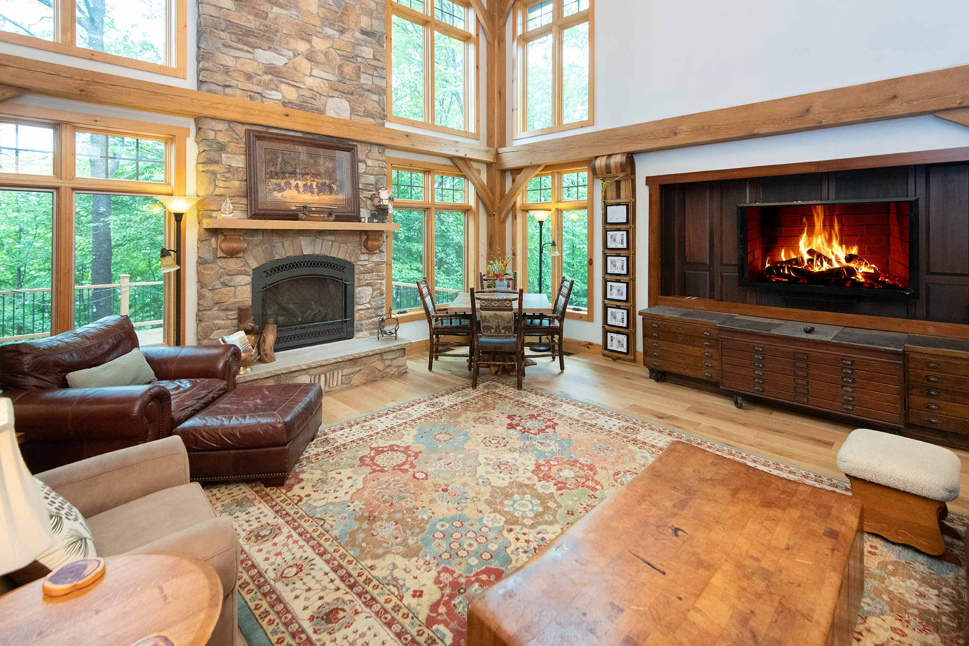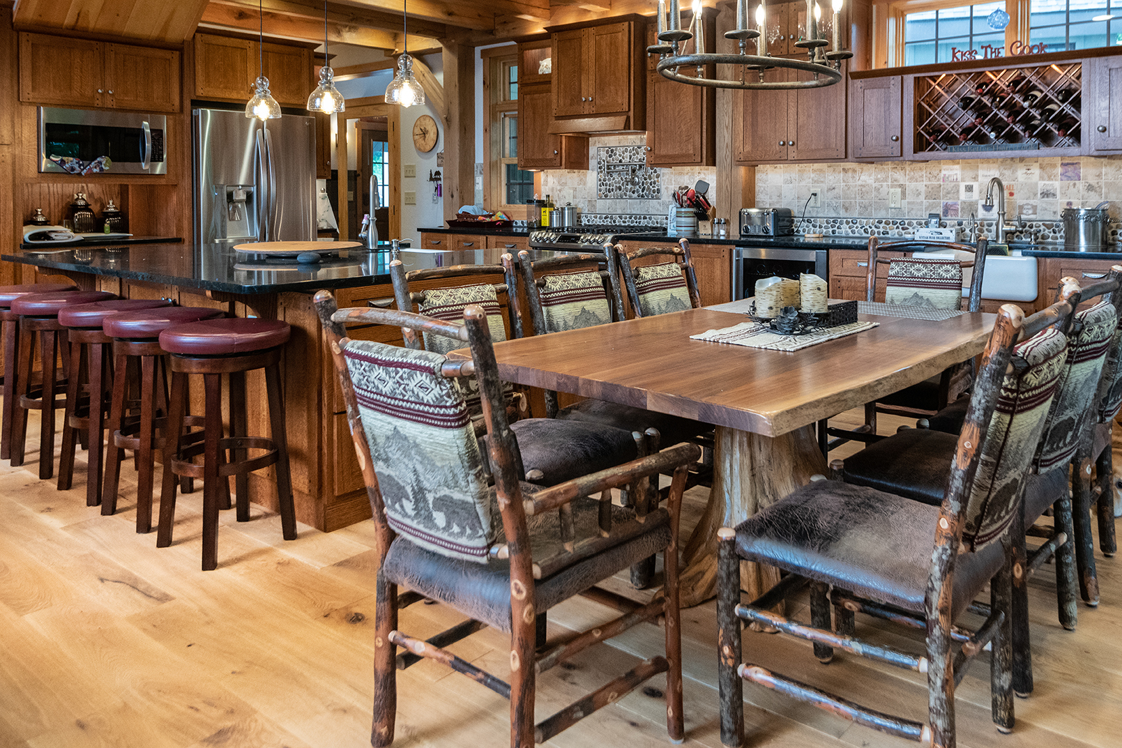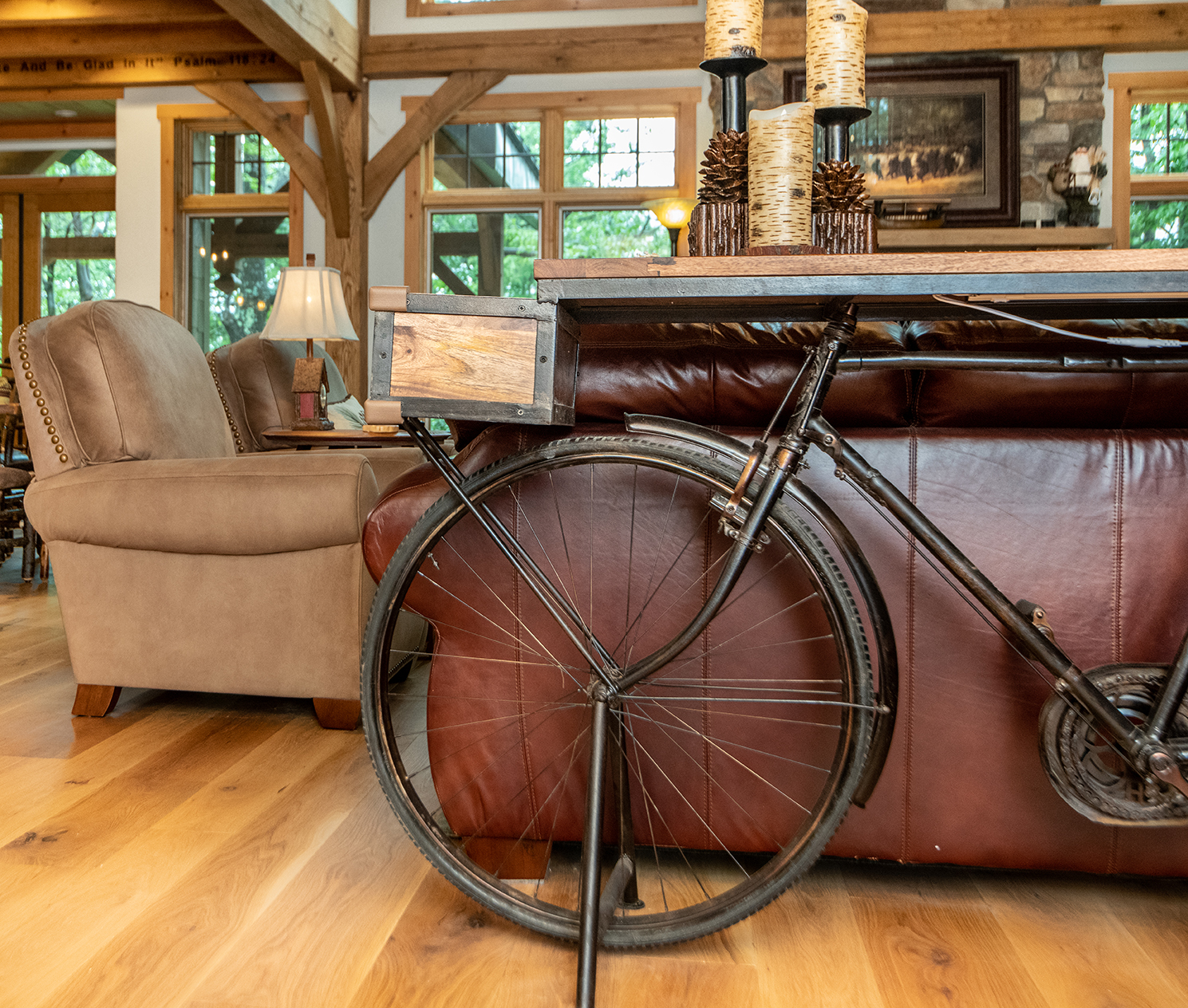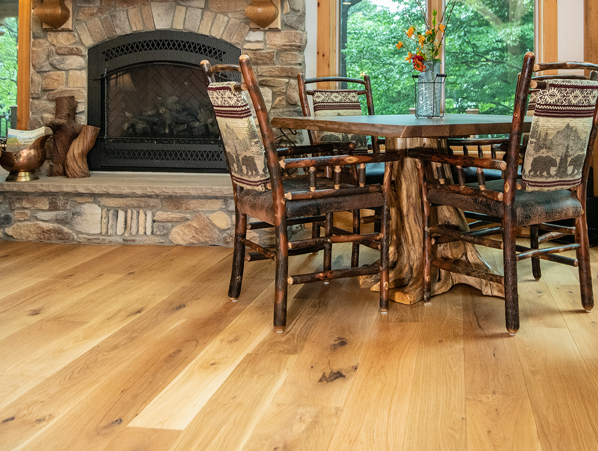 It’s called Hidden Valley for a reason, as you will find this lavish area tucked away near Somerset, PA along a mountaintop with 30 miles of vistas. The clients wanted to enjoy family gatherings in a peaceful community that appreciates nature’s beauty. They had a stunning timber frame home built to coincide with the surroundings and choose companies that work with natural elements in a skillful manner to carry on the authentic beauty throughout their home. Each company involved prides themselves on quality and craftsmanship so they knew between Oakbridge Timber Framing building their home and Peachey Hardwood Flooring creating their floors that this house would be custom to their liking.